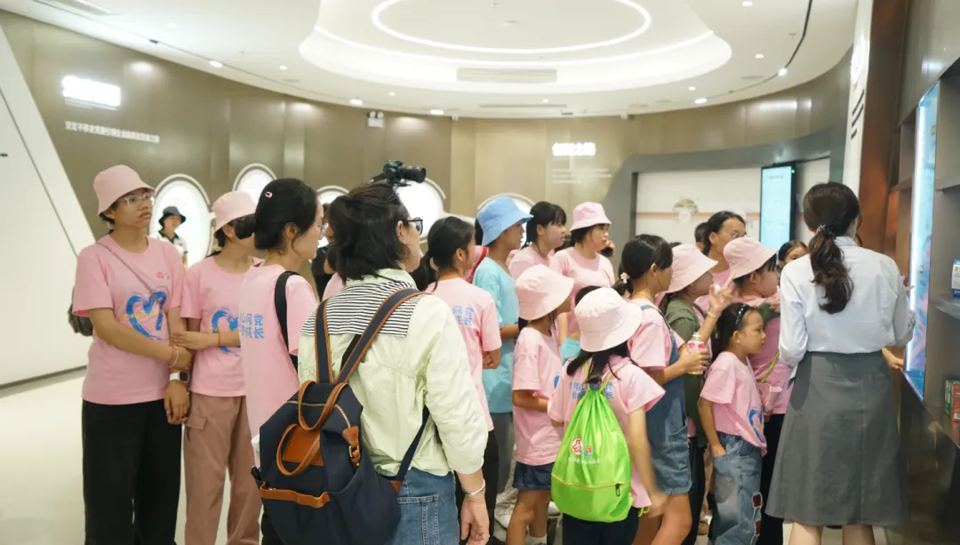 紧接着,孩子们来到了建党百年庆典红旗——070号红旗前。讲解员讲述了钱柜QG777药业集团与庆典红旗的深厚渊源。孩子们听得津津有味,眼中闪烁着对党和国家的热爱与敬仰。
